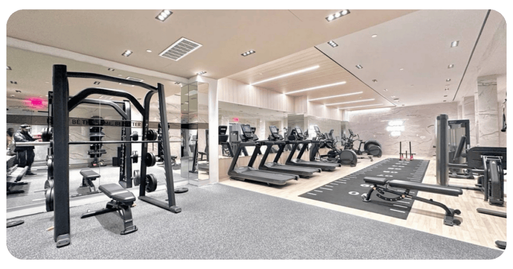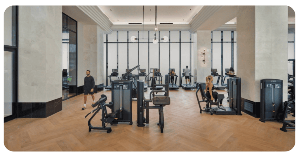 - Strategic and plentiful outlet placement, as seen in the King & Queen Towers fitness center design in Atlanta, GA.