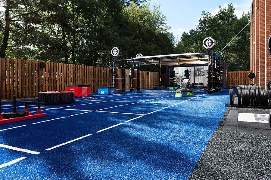 When it comes to actually designing the space, install weatherproof turf and flooring like the ones we offer from Ecore. This way, you’re providing users with a clean, stable area to get their workouts done and they won’t have to worry about the softness of any grass impacting their movements. Plus, having quality, weatherproof materials means less maintenance and safer floors for users.