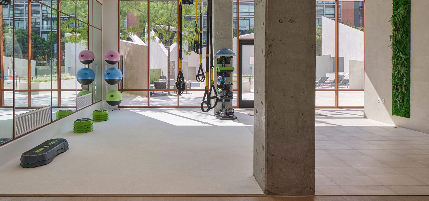 If your property already has an indoor fitness space, and would like to add an outdoor option, see if you can add retractable doors to allow users a chance to bring their workouts outside.